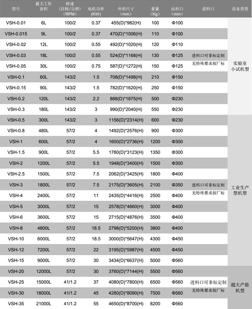 VSH系列-錐形螺旋混合機特點:
